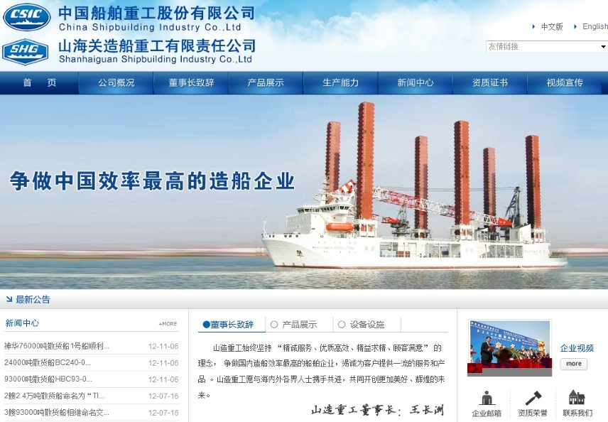 山海關(guān)造船重工有限責任公司(山造重工)由山海關(guān)船舶重工有限責任公司、河北省建設投資公司、秦皇島首秦金屬材料有限公司共同出資組建,2007年5月30日公司注冊成立,注冊資本11.8億元。山造重工是山船重工控股的子公司,山船重工是中國船舶重工集團公司所屬的國有大型一類企業(yè)。