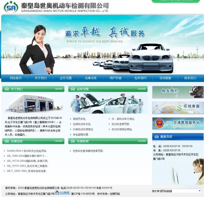 秦皇島世奧機(jī)動(dòng)車檢測(cè)有限公司成立于2010年10月,位于開發(fā)區(qū)騰飛路3號(hào)(富士康南側(cè)300米),占地面積40余畝,設(shè)有四條安檢線(其中大型車檢測(cè)線兩條,小型車檢測(cè)線兩條),擁有50多名專業(yè)技術(shù)人員,采用國內(nèi)先進(jìn)的自動(dòng)化檢測(cè)儀器設(shè)備和管理系統(tǒng)。并有多名交警駐站負(fù)責(zé)安檢及車管業(yè)務(wù),是我市車管所管理下較大的機(jī)動(dòng)車安檢技術(shù)機(jī)構(gòu)。