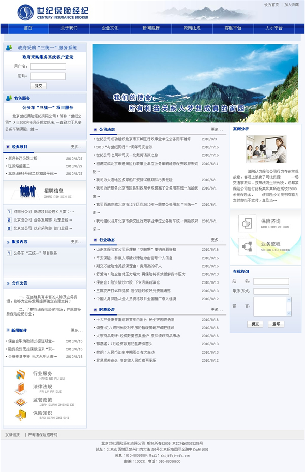北京世紀(jì)保險經(jīng)紀(jì)有限公司是經(jīng)中國保險監(jiān)督管理委員會批準(zhǔn)設(shè)立的全國性、綜合性保險經(jīng)紀(jì)公司,注冊資金為1300萬元?偛吭O(shè)在北京,已在全國各地設(shè)立多個分支機(jī)構(gòu)和客戶服務(wù)中心,主要面向全國經(jīng)營產(chǎn)險、壽險、再保險經(jīng)紀(jì)業(yè)務(wù)及風(fēng)險管理咨詢業(yè)務(wù)。現(xiàn)主要股東為深圳市海富融投資有限公司。