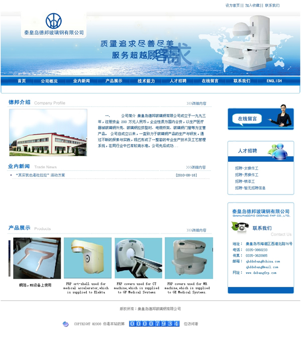 秦皇島德邦玻璃鋼有限公司成立于一九九三年,注冊資金 200 萬元人民幣,企業(yè)性質(zhì)為國內(nèi)合資,以生產(chǎn)醫(yī)療器械玻璃鋼外殼、玻璃鋼拉擠型材、電纜橋架、玻璃鋼門窗等為主營產(chǎn)品。 公司自成立以來,一直致力于玻璃鋼產(chǎn)品的生產(chǎn)與研發(fā),通過不斷的探索與實踐,現(xiàn)已形成了一整套的專業(yè)生產(chǎn)技術(shù)及工藝管理系統(tǒng),在同行業(yè)中已有較高水準。