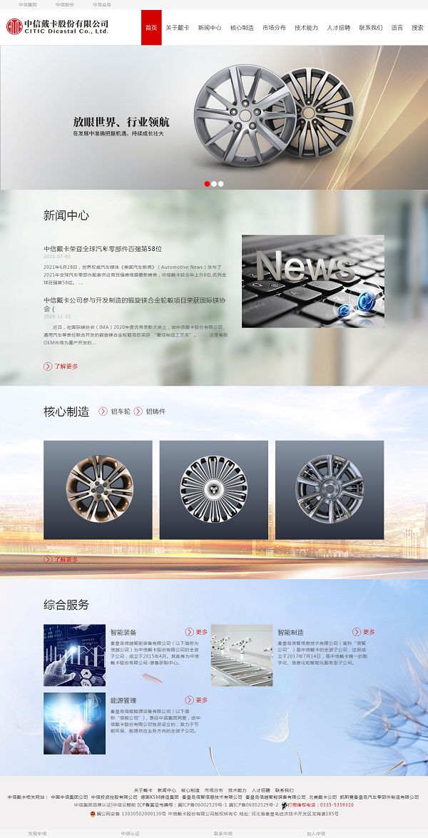 1988年,伴隨著改革開放的春風,中信人做出了一個重大決定,在渤海之濱秦皇島建造了中國大陸第一家鋁車輪制造企業(yè)----中信戴卡股份有限公司(以下簡稱中信戴卡),中國大陸第一只鋁車輪在這里誕生。