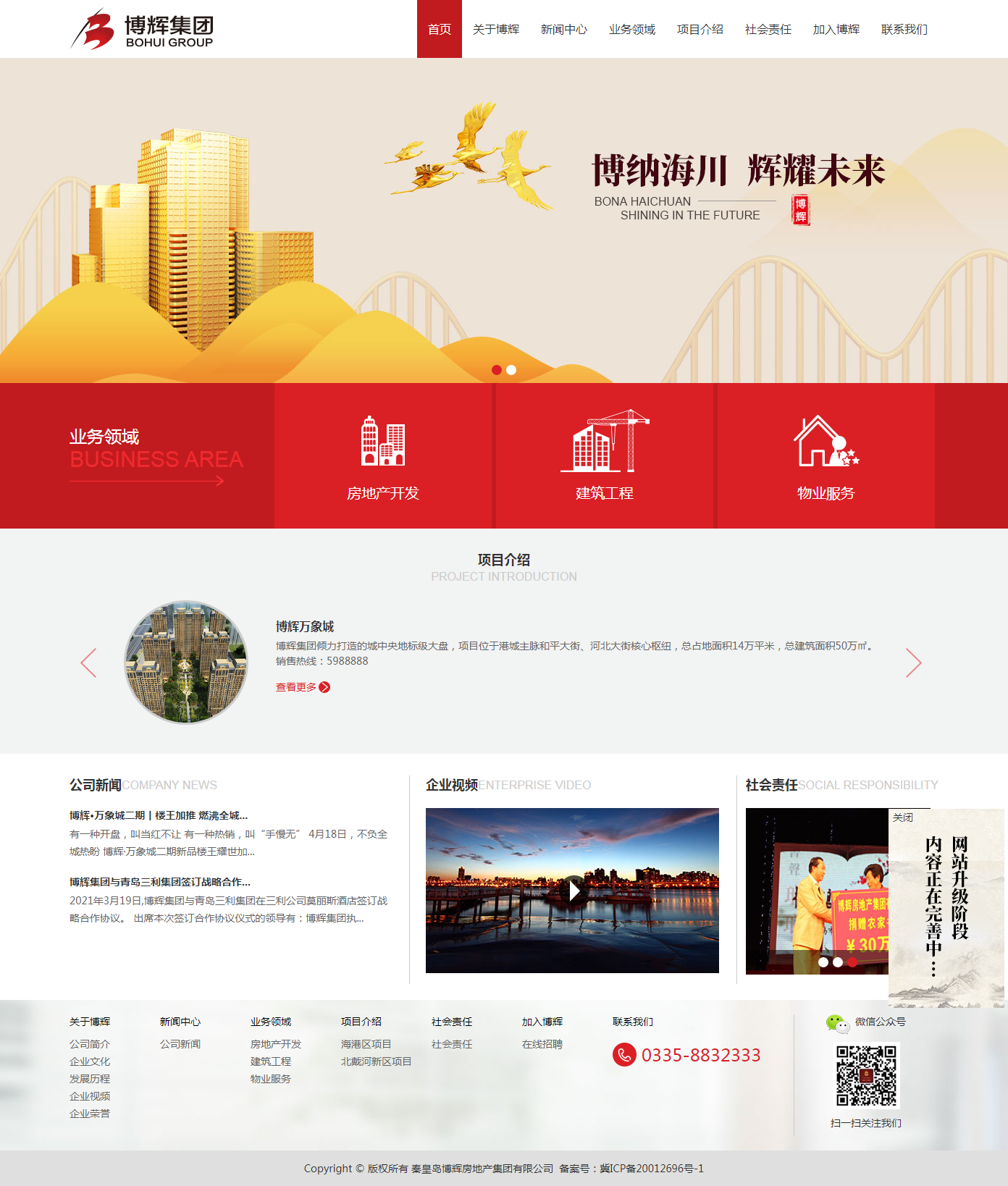 博輝集團(tuán)創(chuàng)立于2003年,總部位于美麗的濱海城市秦皇島,是一家以房地產(chǎn)開發(fā)為主,集建筑工程、物業(yè)管理等為一體的多元化發(fā)展的集團(tuán)公司。集團(tuán)一直致力于城市發(fā)展建設(shè),積極響應(yīng)國家號召參與新農(nóng)村建設(shè),為改善本地區(qū)百姓的居住環(huán)境、提升旅游文化發(fā)展、帶動本地區(qū)經(jīng)濟(jì)繁榮和城市發(fā)展貢獻(xiàn)力量。