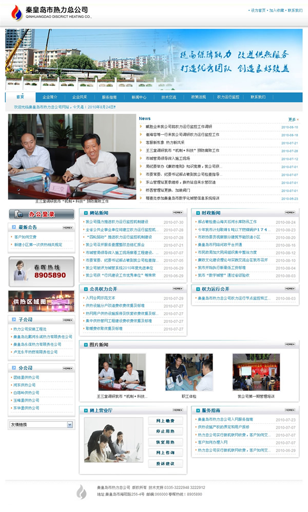 秦皇島市熱力總公司成立于1987年9月,隸屬于秦皇島市城市管理局,公司注冊資金1億元,企業(yè)總資產達到10億元,年收入3億元,職工千余人,其中專業(yè)技術人員200余人,是以供熱生產為主,供熱工程、市政公用工程施工等為輔的國有獨資供熱企業(yè)。