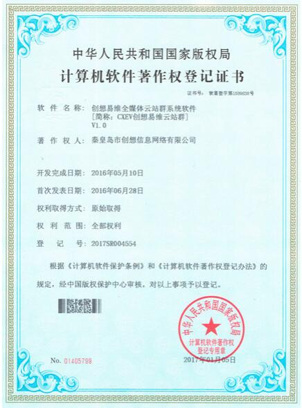 創(chuàng)想易維云站群系統(tǒng)軟件證書正式獲批